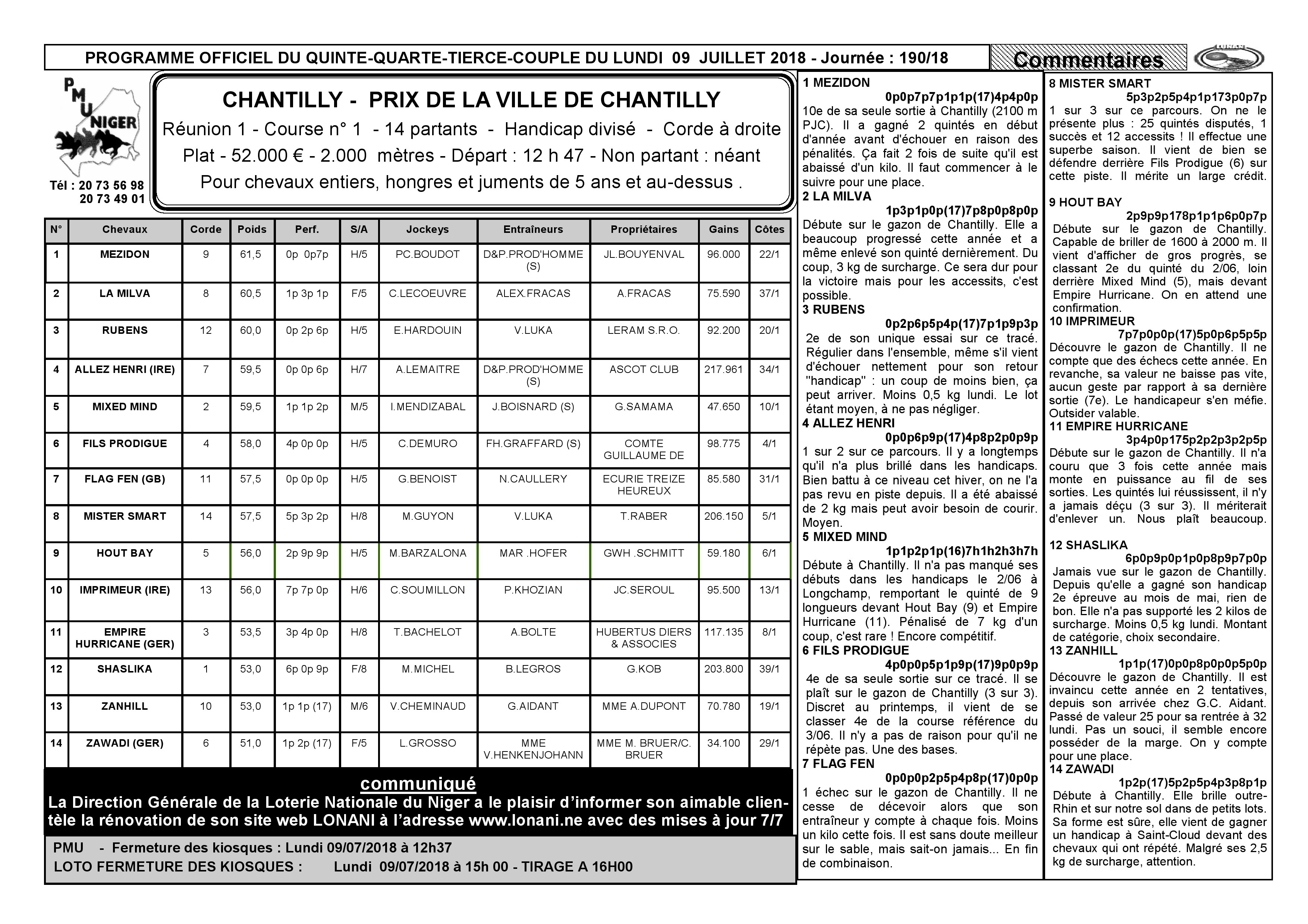 PROGRAMME OFFICIEL DU LUNDI 09 JUILLET 2018 LONANI
