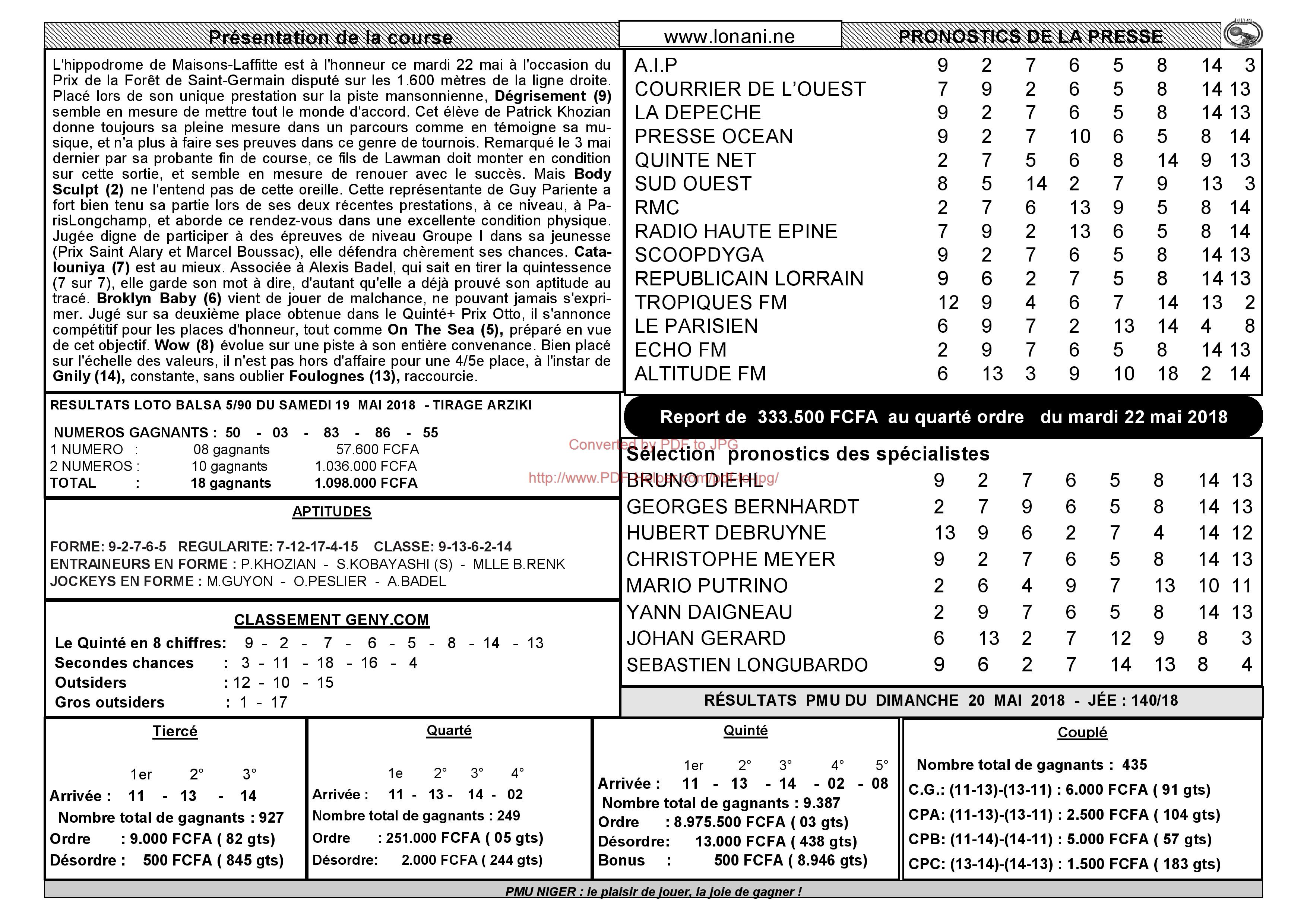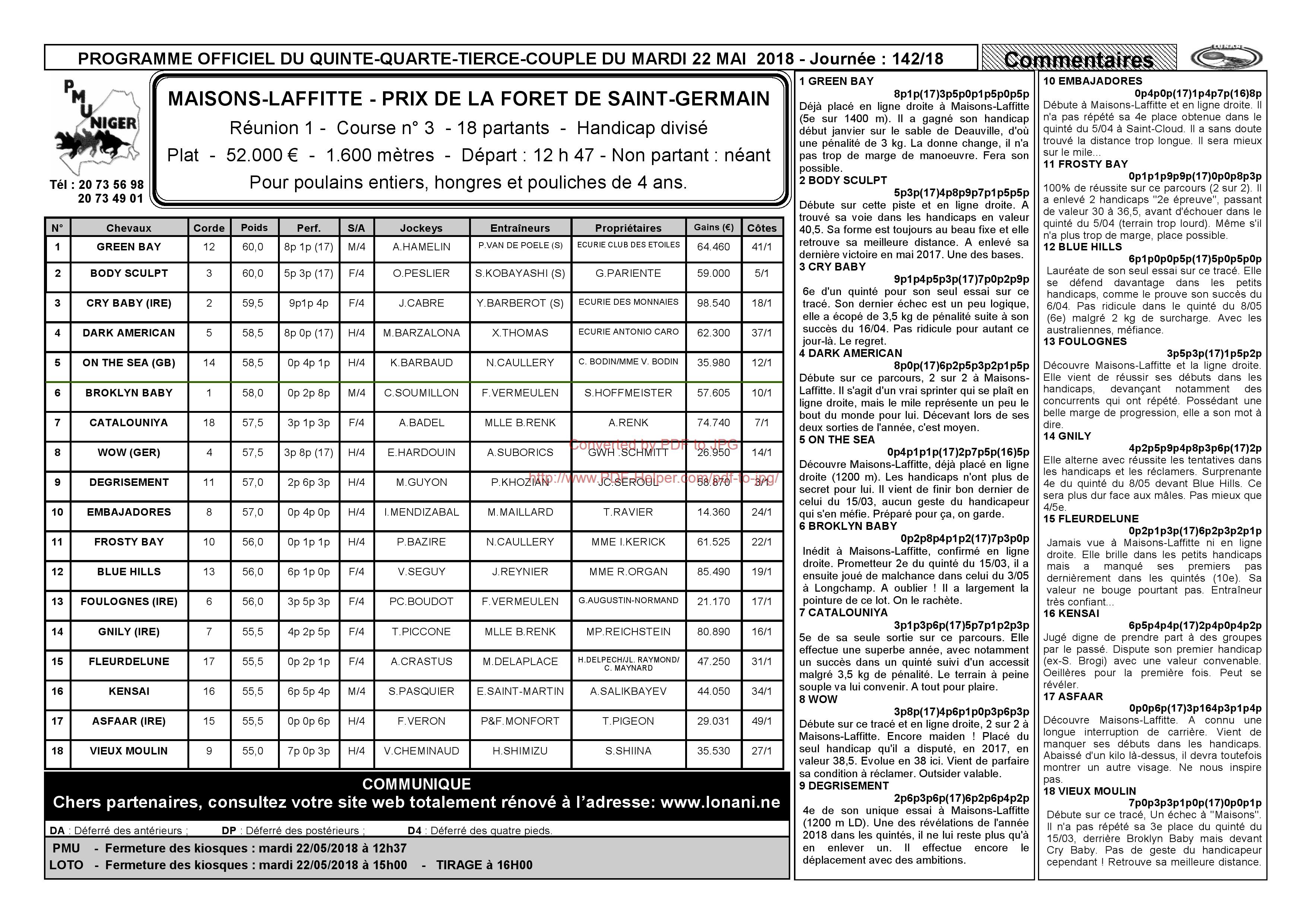 PROGRAMME OFFICIEL DU MARDI 22 MAI 2018 LONANI
